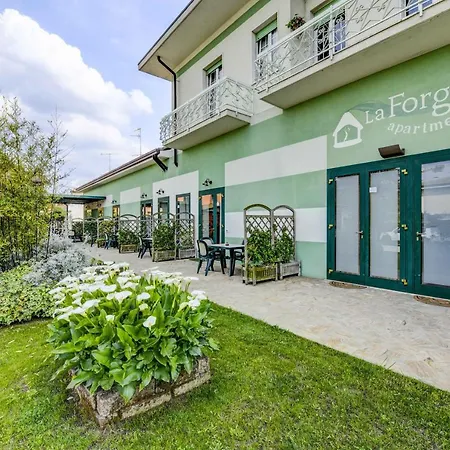 7-slaapkamer La Forgia Apartments appartement bevindt zich binnen een autorit van 10 minuten vanaf het Pretpark Gardaland en biedt een terras met een tafel en ligstoelen. Dit appartement ligt op minder dan 400 meter van Bracco Baldo Beach en biedt een buitenzwembad.